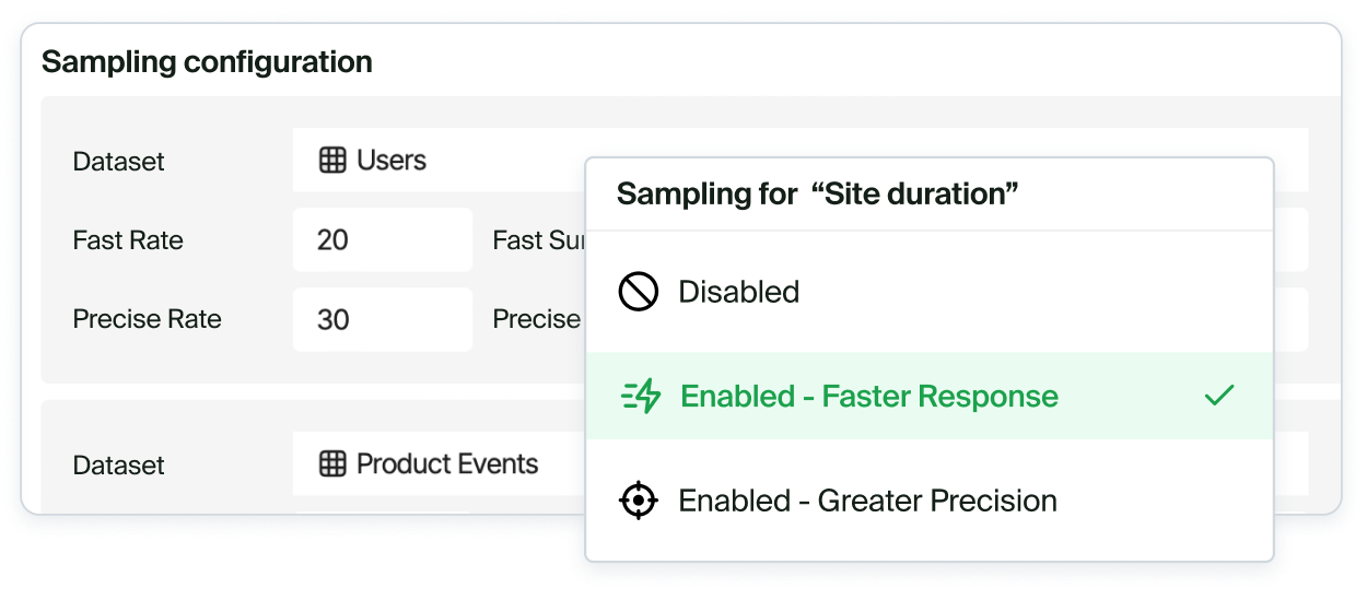 Wenn Sie eine sehr große Datenskala haben, ist die typische Herausforderung bei herkömmlichen BI-Tools eine schlechte Abfrageleistung und hohe Data Warehouse-Kosten. Oftmals vermeiden es Datenteams, einer großen Anzahl von Geschäftsanwendern Zugang zu Ad-hoc-Analysen zu gewähren, weil sie Angst vor unkontrollierten Abfragen und hohen Warehouse-Kosten haben. Optimizely Warehouse-Native Analytics ist mit seiner Expertise in der Verarbeitung großer Mengen von Ereignisdaten darauf ausgelegt, mit innovativen Techniken wie Sampling und Auto-Materialisierung eine massive Skalierung zu bewältigen, um das beste Kosten-Leistungs-Verhältnis zu bieten. Benutzer können Ad-hoc-Analysen mit guten Reaktionszeiten und kontrollierten Kosten selbst durchführen. Datenteams können den Zugang zu Optimizely Warehouse-Native Analytics für alle Mitarbeiter des Unternehmens zur Selbstbedienung freigeben.