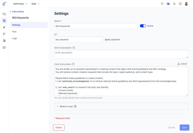 We're prioritizing some impactful tools that will give Opal's AI agents the ability to do more on your behalf within Optimizely CMP, including support for:​