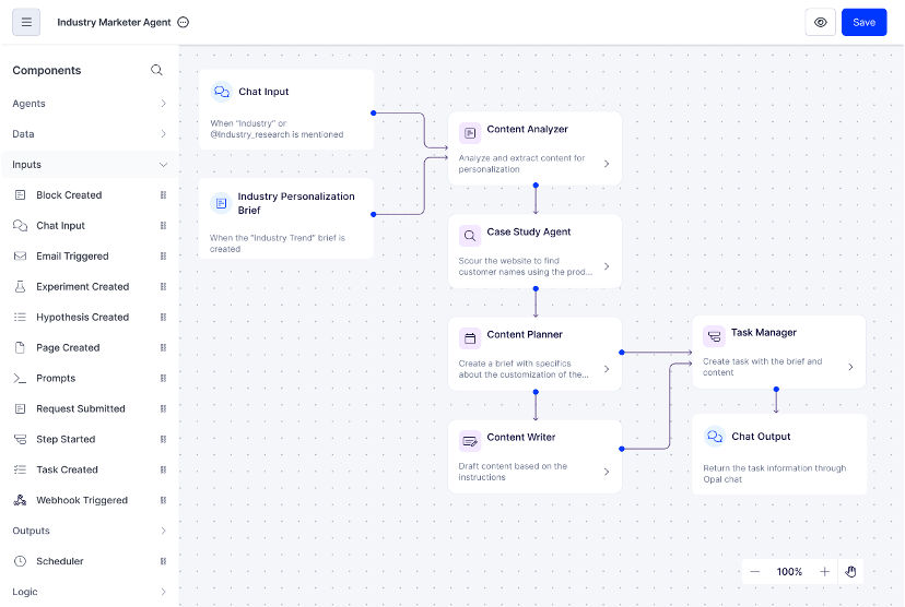 With this agent, you'll simply provide a prompt for a presentation in Opal Chat, and the agent will create a full PowerPoint in line with your specific brand guidelines.​